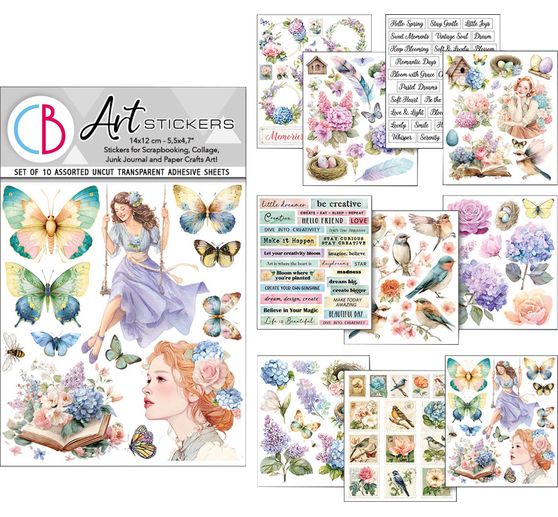 Entdecke die Art Stickers "Daydreams". Diese Stickerbogen sind mit frühlingshaften Motiven wie Schmetterlingen, Federn und Blumen bedruckt. Mit 10 Bogen voller inspirierender Designs bieten sie dir unzählige Möglichkeiten, deine Scrapbooking-Layouts, Junk Journals oder handgemachten Karten zu verschönern.