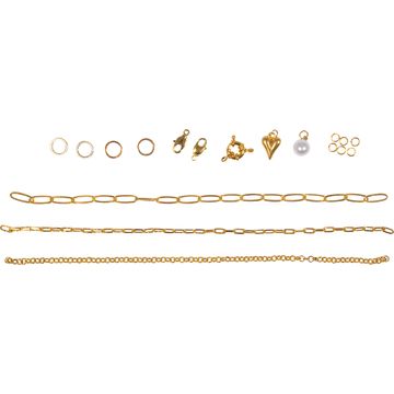 Mit 18 Teilen, darunter verspielte Charms und unauffällige Karabinerverschlüsse, kannst du im Handumdrehen individuelle Armbänder oder eine stilvolle Halskette gestalten. Die Ketten lassen sich einzeln tragen oder zu einem mehrteiligen Gliederarmband zusammenfügen, ganz nach deinem Geschmack.