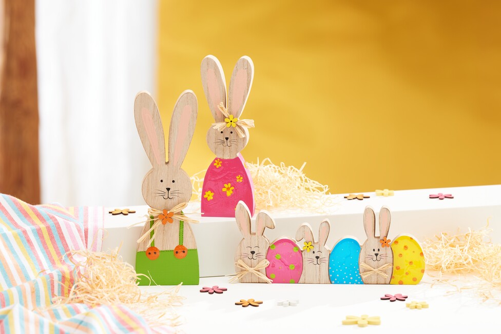 Bemale die Holzhasen und -eier ganz nach deinem persönlichen Geschmack. Wähle Farben, die dein bestehendes Dekor ergänzen, oder bringe frische, frühlingshafte Töne in dein Zuhause.