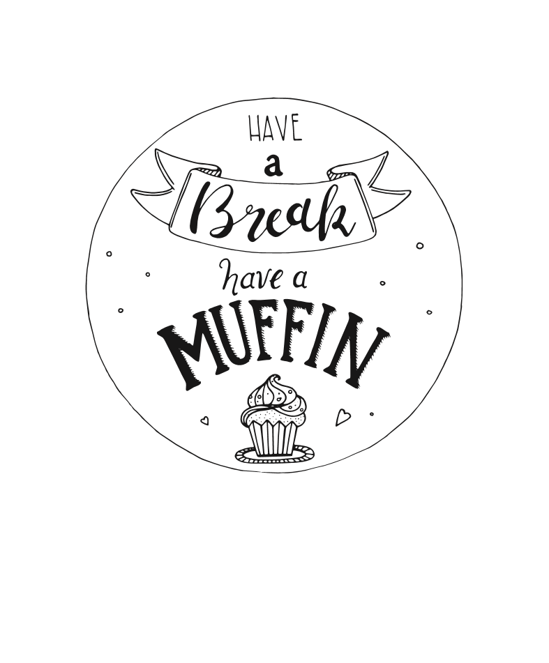 Druckt euch zunächst die Have a break – have a muffing Vorlage aus und vergrößert sie nach Belieben.