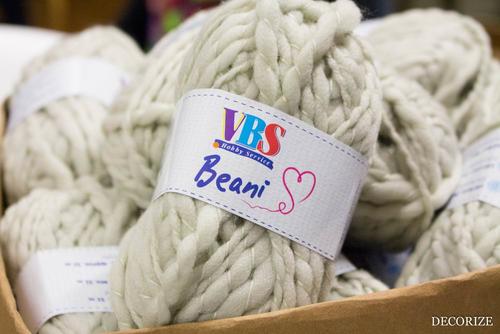Nicht nur für Beanies gedacht, auch Pompons sind aus dieser Wolle wunderschön. Einige Teilnehmer der Kreativ-Party haben diese Pompons kombiniert mit denen aus der schneeweißen Lisa-Wolle. Sieht klasse aus!