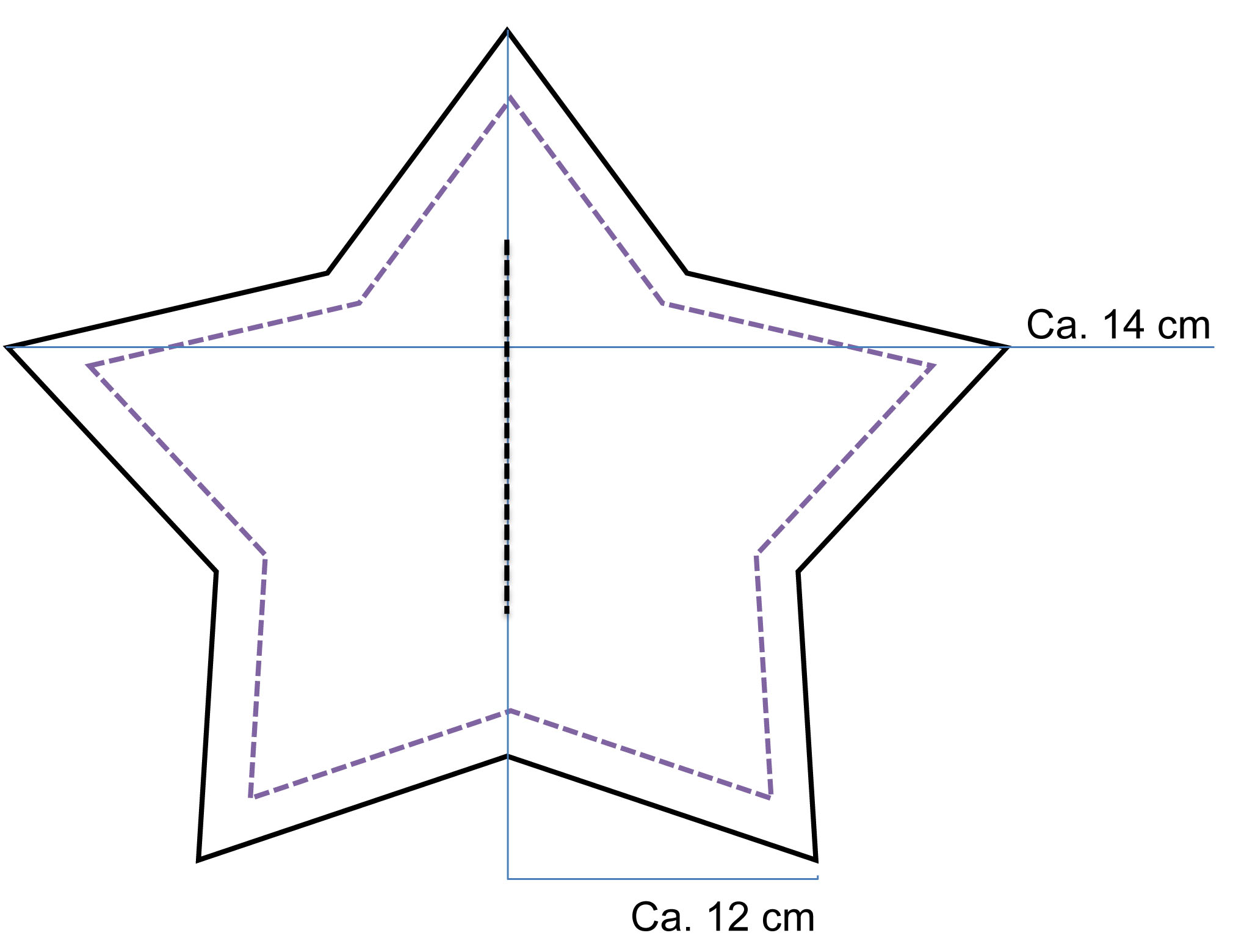 Bevor es richtig losgehen kann, benötigen wir eine Vorlage, ein sog. Schnittmuster für unsere Sterne. Die Größe und Form könnt ihr natürlich selbst bestimmen. Bedenkt nur, dass ihr überall einen guten Zentimeter für den Saum bedenken müsst.