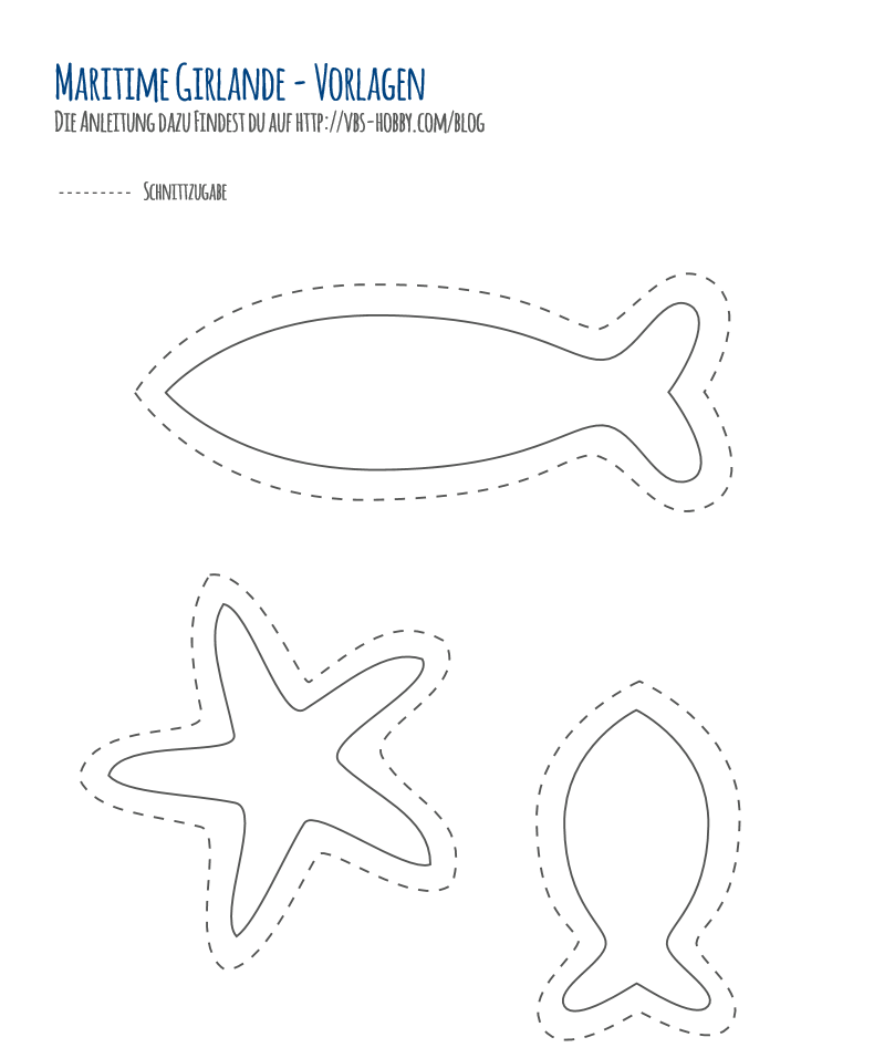 Wenn ihr etwas Eigenes entwerft, dann achtet darauf, dass eure Vorlage später eine Stoffzugabe von ca. 1cm für die Nähte braucht. Das heißt, ihr erstellt z.B. eine Fischvorlage in der von euch gewünschten Größe, aber schneidet diese vergrößert aus und nicht direkt an der Kante.