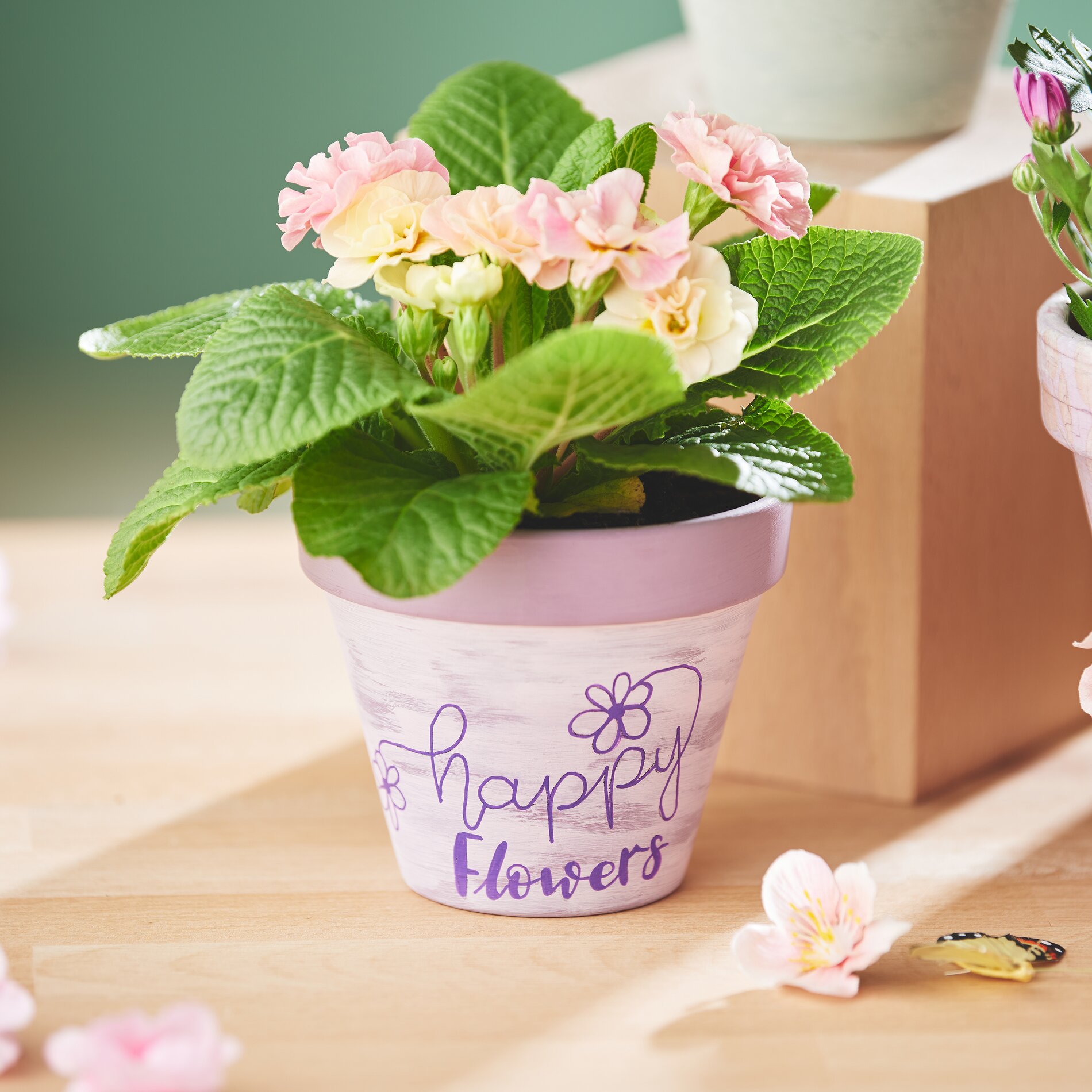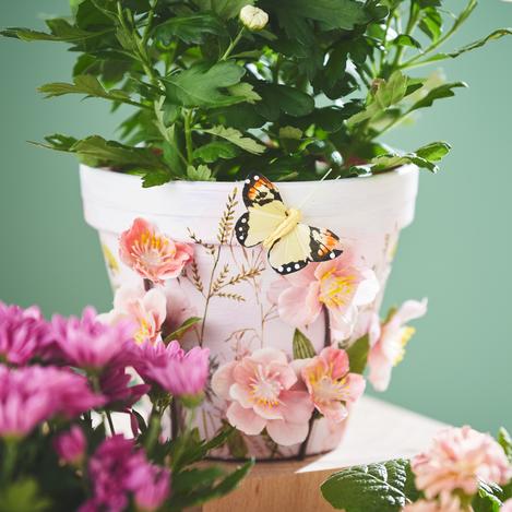 Are you looking for a creative idea to give your flower pots the perfect spring look? The designed flower pots in this idea have been created using three exciting techniques. Find out here how you can use the craquelure technique, the vintage look and napkin technique to create your new spring decoration.