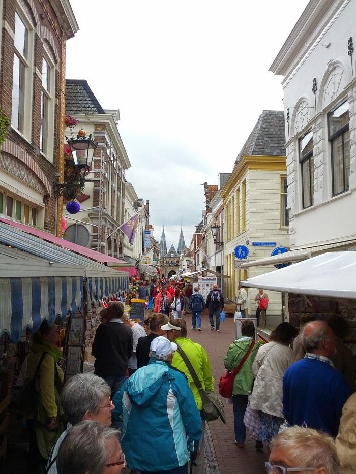 Hinter den aufgereihten Verkaufsständen verbirgt sich die malerische Stadt Kampen, unzählige kleine Gässchen mit kleinen Boutiquen und Läden die abseits großer Einkaufsketten zum stöbern einladen.