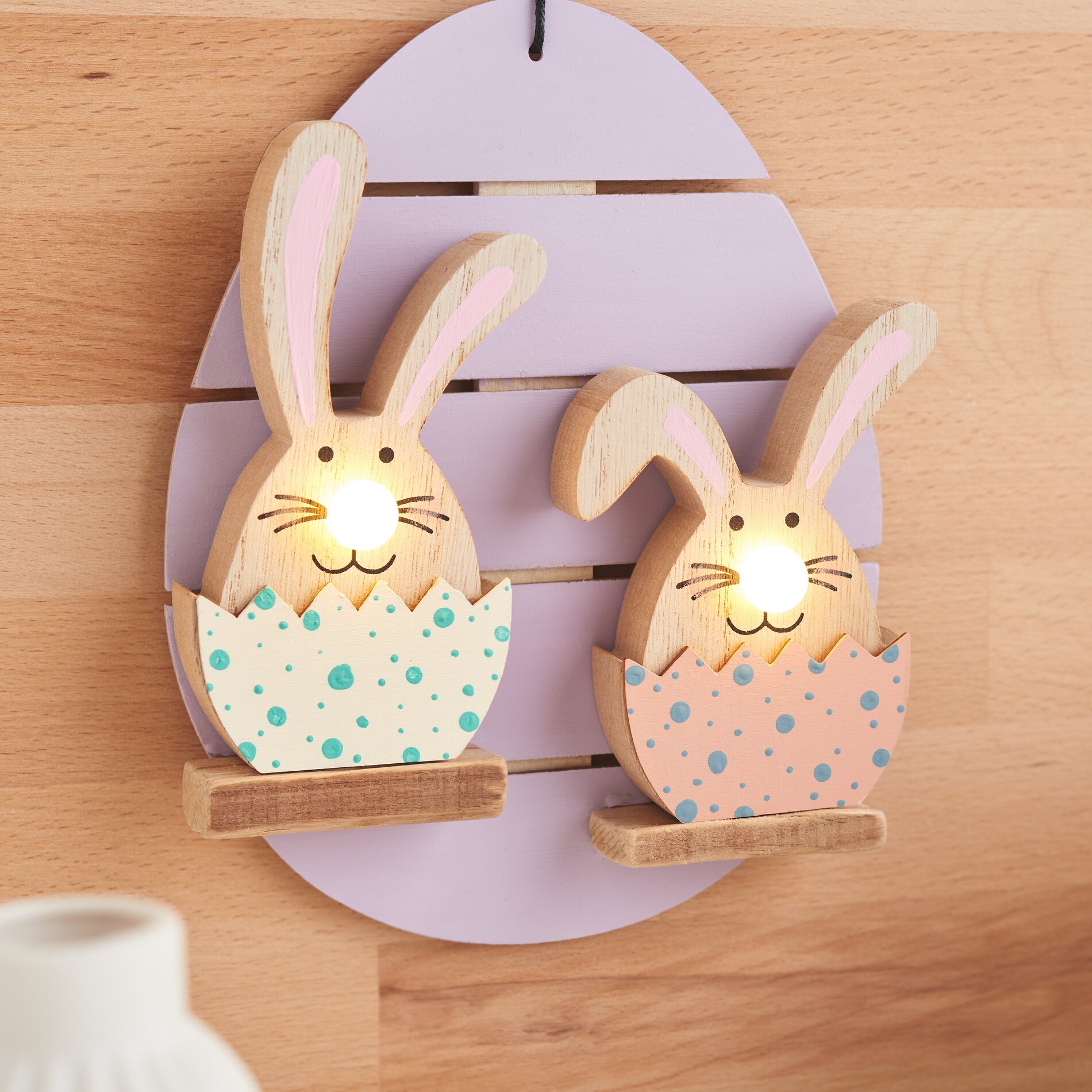 This lovingly designed decorative sign egg is a real eye-catcher during the Easter period! The bunnies with the LED nose are also suitable as decoration beyond Easter, because with their friendly look they bring a good mood and fresh spring feelings into your home. And the best thing is that you can make this creative idea yourself in no time at all.
