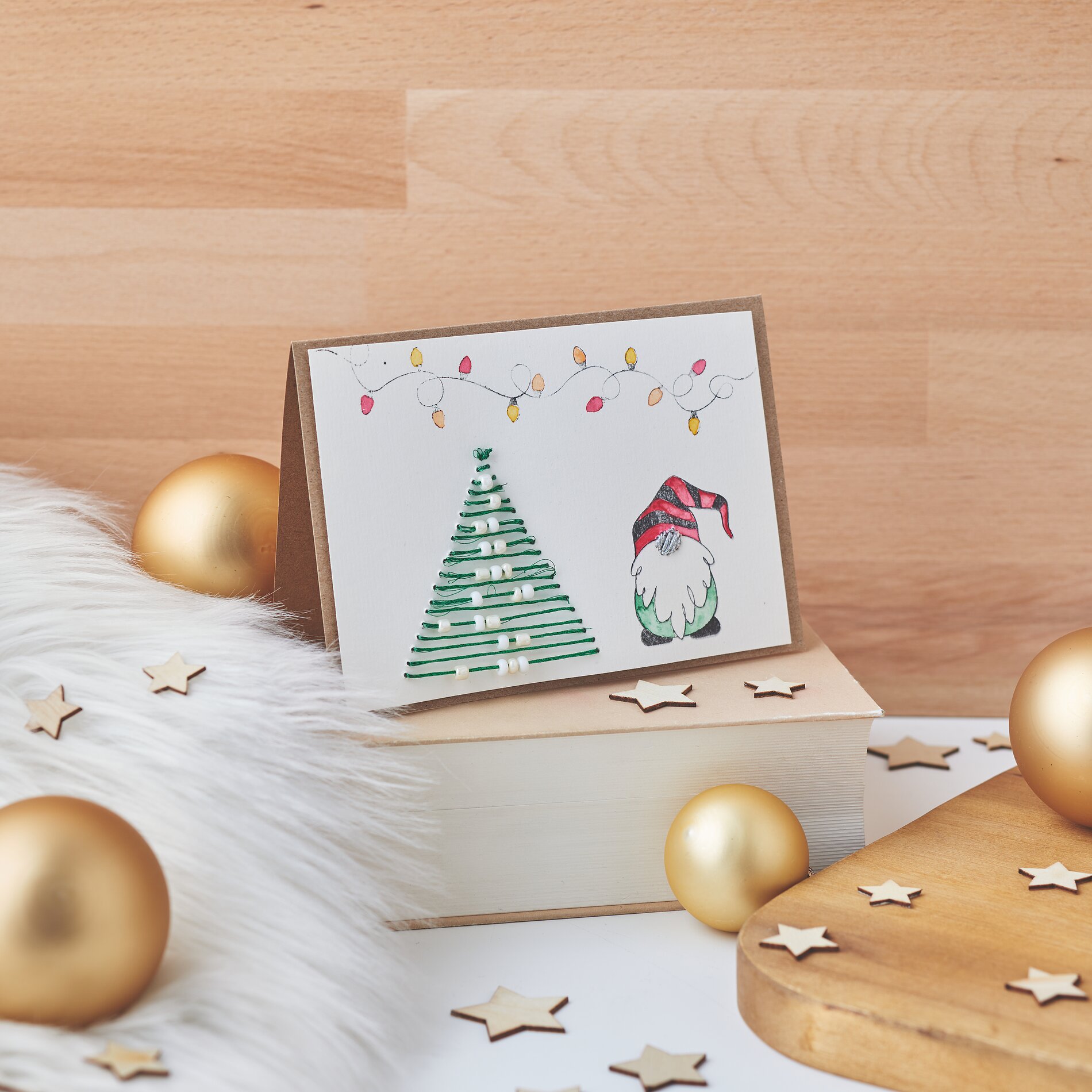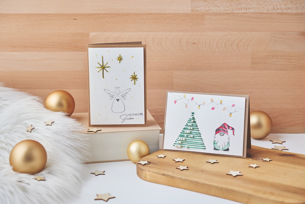 With our instructions, you can conjure up exceptionally beautiful Christmas cards in just a few steps that will captivate you with their hand-embroidered details. Learn how to create them using stamps and needle and thread.