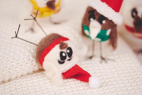 These cute birds with a Christmas look are the ideal project to try out felting. But even for advanced crafters, the birds are a great decoration for the Christmas season. With just a few materials and a little skill, you have finished making the funny flock of birds and can decorate them on the windowsill, table or chest of drawers.