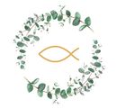 Napkin "Communion branch" is suitable for the occasions of communion, confirmation, baptism and confirmation. The noble quarter motif with white background shows a golden fish in the center surrounded by a delicate wreath of eucalyptus. Suitable as table decoration for this special day or also for creative gifts.