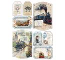 Discover the magic of times gone by with the Paper set "Eastern Journey"! Immerse yourself in a world full of nostalgic motifs: such astraveling people, steam locomotives, maps, butterflies, flowers, lettering, backgrounds with ornaments and much more. Printed on both sides, these A4 design papers in harmonious shades of beige, gray and blue invite you to unleash your creativity.
