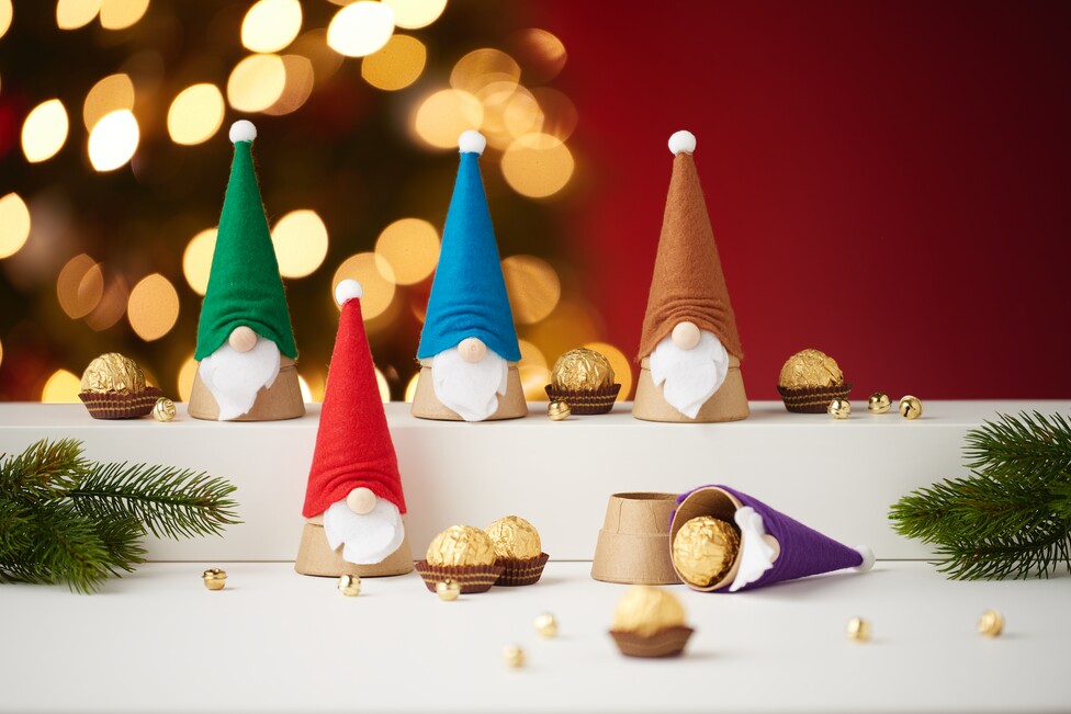 Add the pompom: For the crowning touch, glue a small pompom to the top of the pointed hat as a bobble. This completes the unmistakable look of your Secret Santa gift.