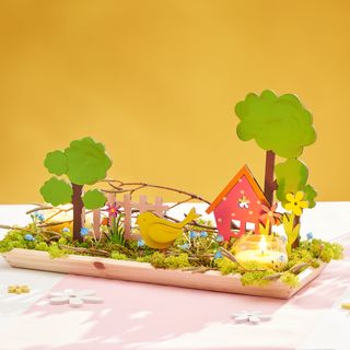 The VBS Wooden building kit on tree trunk is not only a beautiful decoration for Easter and Spring, but also a great crafting material for your creative ideas. With a size of 20 x 14,5 cm it is perfect for freshening up your home and making it cozy.