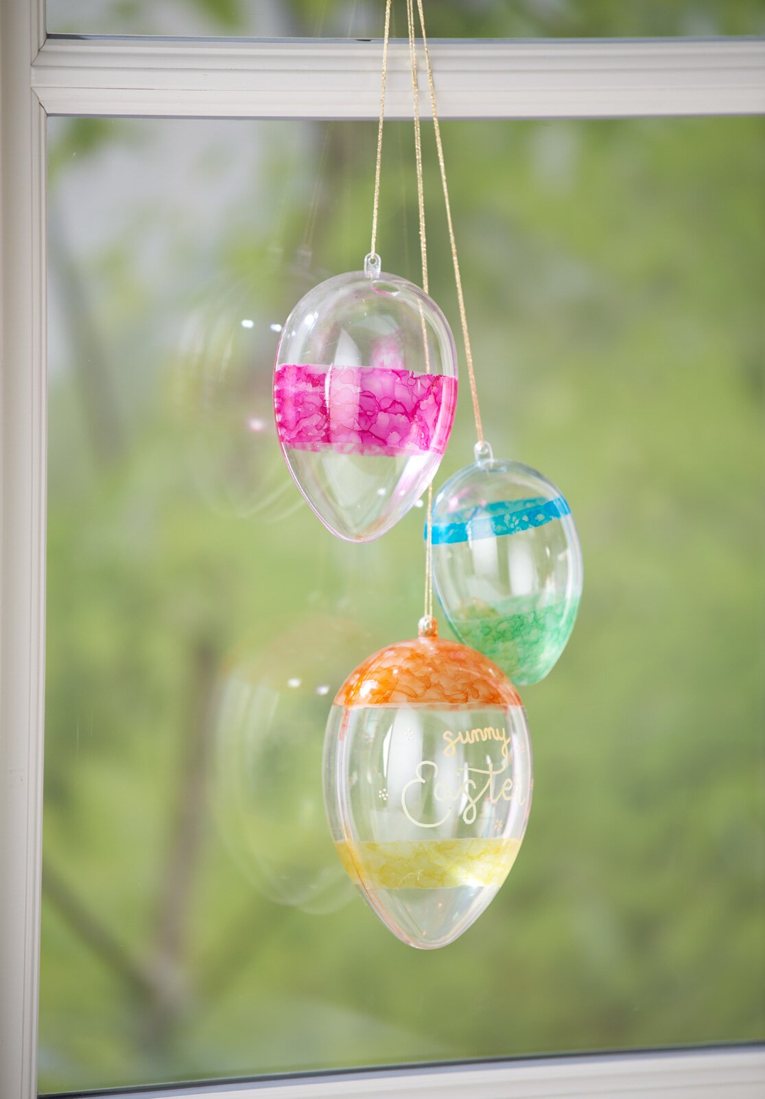 Gönnen Sie sich faszinierende Ostereier für Ihre Außendekoration! Die Acryleier sind mit Alcohol Ink und VBS Frost Effektfarbe gestaltet.