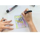Utilisez les nombreuses possibilités de superposition de couleurs et créez des effets uniques. Le marqueur permanent inclus vous permet d'améliorer encore vos œuvres d'art, de les contourner ou d'écrire dessus. Le marqueur à double pointe permet des détails précis et créatifs qui donneront vie à vos œuvres.