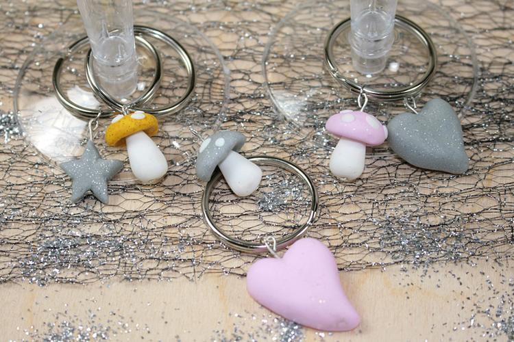 Das Herstellen von Glas-Markierern ist eigentlich denkbar einfach. Je nach Party fertigt ihr passende Anhänger und befestigt diese an den Spaltringen.