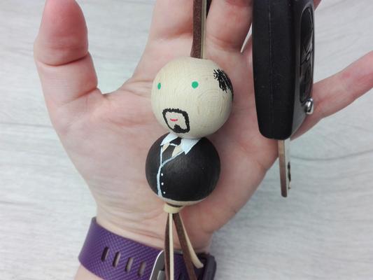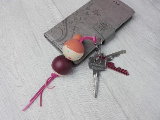 Schlüsselanhänger aus Holzkugeln Mädchen mit Dutt