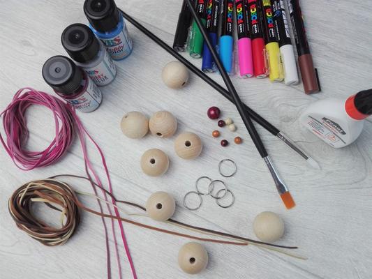 Schlüsselanhänger aus Holzkugeln körper bemalen