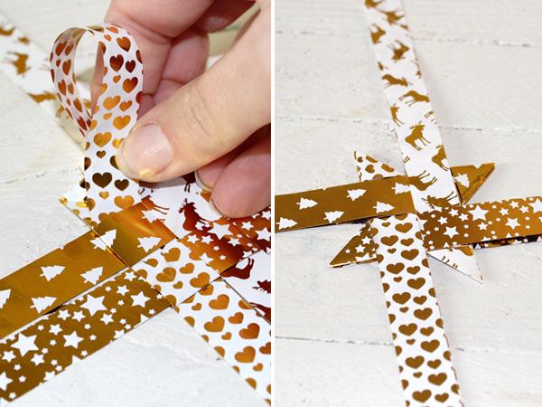 Für die Sterne könnt ihr die Papierstreifen beliebig kombinieren. Damit ihr besser sehen könnt, mit welchem Streifen ich aktuell arbeite, habe ich für mein Beispiel vier verschiedene genutzt.