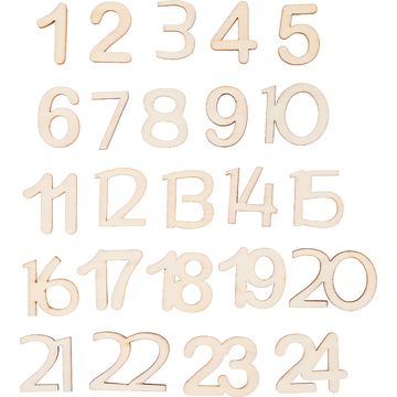 Une fois que la peinture est complètement sèche, fixe les Chiffres de l'Avent et les Pièces à disperser peints sur les maisonnettes respectives à l'aide de colle de bricolage . Veille à fixer les Chiffres de manière à ce que les maisonnettes puissent toujours être ouvertes. Tu pourras ainsi y placer des petites surprises pour l'Avent à l'étape suivante.