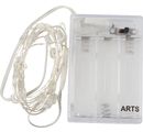 Cette guirlande d’une longueur totale de 2,30 m, ponctuée de 20 LED d’env. L 8 mm x l 5 mm espacées de 10 cm, fonctionne grâce à 3 piles AA (non fournies) et diffuse un blanc chaud très agréable et poétique. Dotée d’un interrupteur placé sur le haut de son boîtier à piles, elle peut être allumée et éteinte à loisir.