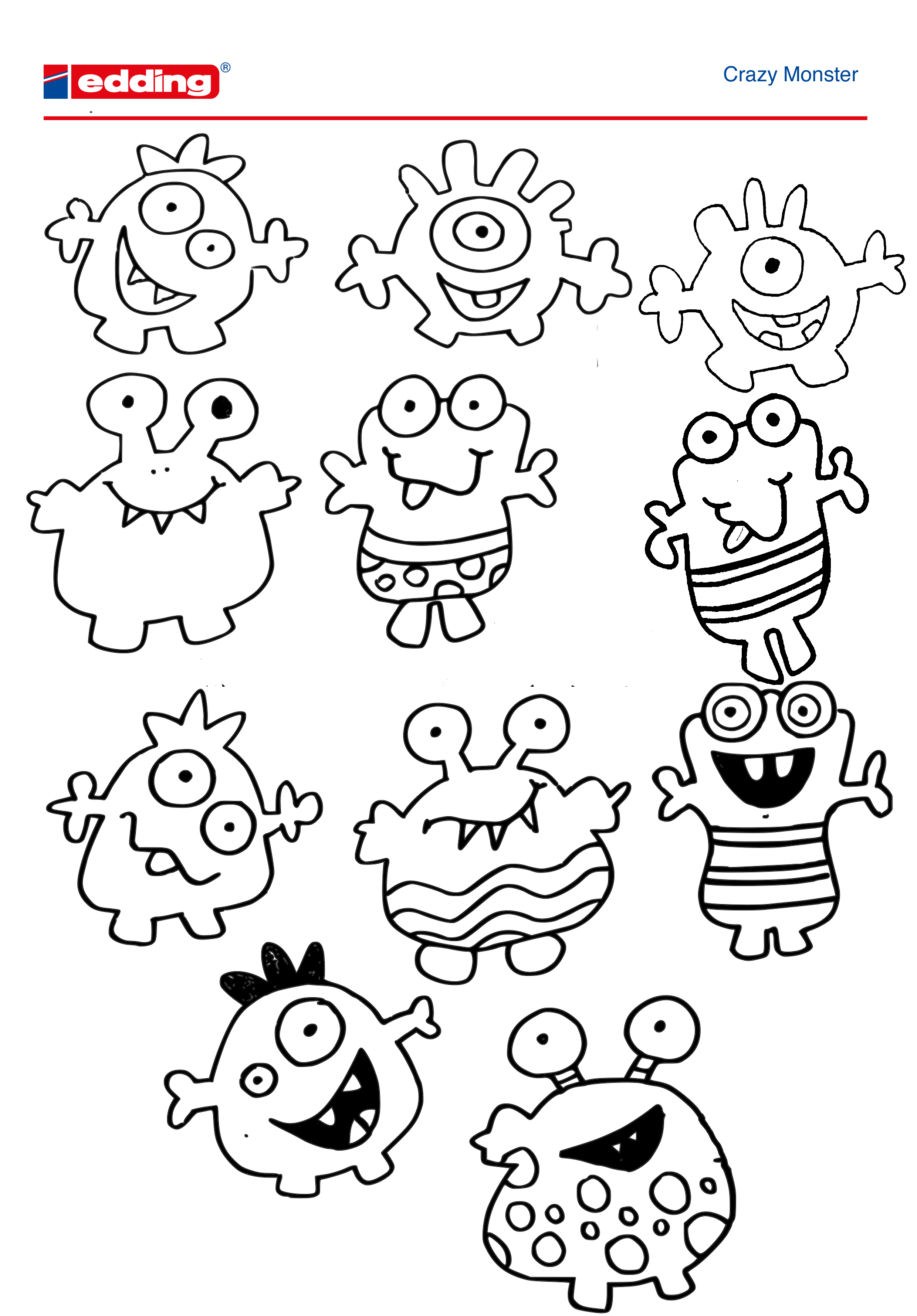 Ensuite, vous pouvez choisir vos couleurs préférées dans le set et colorier les monstres à votre guise avec les feutres épais.