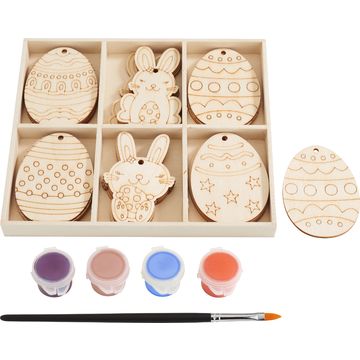 Réveille la magie du printemps dans ta maison avec notre set motifs en bois VBS « Œufs » avec peinture et pinceau ! Ce petit kit est parfait pour les esprits créatifs et vous offre tout ce dont vous avez besoin pour personnaliser votre décoration de Pâques.