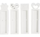 Avec quatre motifs uniques - cadeau, cœur, enveloppe et plus - vous pouvez créer des supports à barre de chocolat personnalisés qui conviennent parfaitement aux barres de chocolat mesurant jusqu'à 8 x 2 cm. Le moule en silicone flexible vous permet de réaliser facilement des moulages avec de la poudre de moulage ou de la résine. Après durcissement complet du matériau, vous pouvez démouler facilement et selon le matériau choisi, décorer les moulages à votre goût avec des peintures, des pâtes à effet ou des sprays.