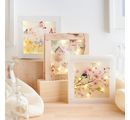 Les lamelles en acrylique se marient à merveille avec les lamelles en bois. Elles permettent de mettre en valeur votre création en jouant sur la transparence : vous pouvez y réaliser une inscription en film vinyle, en peinture tamponnée et autres et placer simplement une guirlande lumineuse derrière les lamelles en acrylique et le tour est joué !