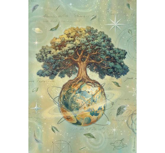 Découvrez la magie d'un nouveau départ avec le soie de paille à motifs « A New Beginning - The World Tree ». Ce design inspirant représente un arbre puissant trônant sur un globe terrestre, entouré d'un univers de feuilles, d'étoiles et de planètes. Laissez libre cours à votre créativité et créez des œuvres d'art uniques avec ce papier naturel polyvalent.