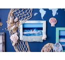 Présentant différents encadrés dans lesquels figurent coraux, coquillages, étoiles de mer et hippocampes aux couleurs soutenues sur un fond pastel, il suffit de la découper et de l’appliquer sur le support de son choix à l’aide d’un pinceau et d’une colle-vernis, prévus spécialement pour le serviettage et le découpage.