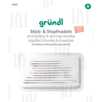 Entdecke die grenzenlosen Möglichkeiten mit den Gründl Stick- und Stopfnadeln ohne Spitze! Diese vielseitigen Nadeln sind der perfekte Begleiter für deine kreativen Näh- und Stickprojekte. Mit 10 robusten Nadeln aus Karbonstahl in verschiedenen Größen bist du bestens ausgerüstet. Die abgerundeten Spitzen machen sie ideal zum Stopfen von Löchern und zum Anbringen von Knöpfen.