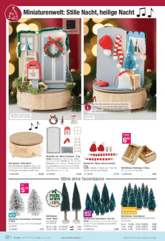 Dekobeispiel mit VBS Holzspatel \ aus unserem Onlineshop.22 |Schweiz: +41 71 511 23 70 (Mo.-Fr. 9-17 Uhr)service@vbs-hobby.chAlle Preise in CHF sowie versteuert und verzolltDekobeispiel Miniaturenwelt: Stille Nacht, heilige Nacht NEUVBS Minatur-Tannenbaum mit Schnee, 2 St%u00fcck%u00d8 ca. 5,5 cm, H ca. 10 cm. Aus Kunststoff und Metall.41268 675,75Nur575VBS Miniatur Tanne \Aus Kunststoff und Polyresin.26 cm1 Stk.41155 086,204,6519 cm2 Stk.41155 078,206,65VBS Spieluhr \Mit mechanischem Spielwerk. %u00d8 ca. 12,5 cm, H ca. 6,5 cm. Korpus aus Kiefernholz, Drehscheibe und Boden aus MDF-Holz.41667 89023,40Wichtelt%u00fcr-Set \Inhalt: Wichtelt%u00fcr ca. 16 x 8,3 cm, Fenster ca. 4,3 x 4,3 cm, Holzleiter ca. 10 x 4,2 cm, Briefkasten ca. 5 x 3,5 cm, T%u00fcrkranz ca. %u00d8 5 cm, Tannenbaum ca. 5,5 x 2,5 cm, Filzfu%u00dfmatte ca. 7 x 4 cm, Sack ca. 4 x 6 cm und Holzschuhe ca. 4 x 4 x 1 cm.41268 3212,40Wichtel-Set \6-tlg.Inhalt: 2 M%u00fctzen, 2 Schals und 1 Paar Holzschuhe. Aus Holz und Polyester.41192 5017,75VBS Miniatur-Obststiege, 2 St%u00fcckCa. L 5 x B 4 cm. Aus Holz.41664 5856,652 St%u00fcck665BEWERTUNGxxxxxVBS Miniatur Tannenb%u00e4umeBeschneit. Baumkrone aus Kunststoff, Standfu%u00df aus Holz.6 cm10 Stk.41617 048 069,307 cm8 Stk.41617 048 079,3010 cm5 Stk.41617 048 109,30BESTSELLERVBS Miniatur Tannenbaum, 16er-SetInhalt: 2 x H 15 cm, 2 x H 10 cm, 4 x H 8 cm, 8 x H 6 cm. Beschneit. Aus Kunststoff, Standfu%u00df aus Holz.41692 61818,60 W%u00e4hle deine Tannenb%u00e4ume -18%Anleitung3497Die Wichtelt%u00fcr befi ndet sich auf einer drehenden Spieluhr und ist von beiden Seiten liebevoll verziert. Dadurch l%u00e4sst sich das Wichtelhaus sowohl von innen als auch von au%u00dfen betrachten.