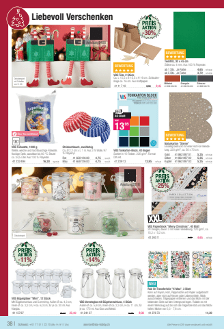 Dekobeispiel mit Schellen von S. 44.-25%VBS B%u00fcgelgl%u00e4ser \Mit B%u00fcgelverschluss und Gummiring. Au%u00dfen-%u00d8 ca. 4,3 cm, Innen-%u00d8 ca. 3,3 cm, H ca. 6,3 cm, f%u00fcr je ca. 30 ml. Aus Klarglas.41157 6726,4023,40VBS Papierblock \20 Designs, davon 3 mit Folien-Veredelung. 120 g/m%u00b2, ca. 15,2 x 15,2 cm.41240 116,204,651m%u00b2=5,03NEURub On Transferfolie \Kann auf Raysin, Holz, Pappmach%u00e9 und Papieraufgebracht werden, aber nicht auf Kerzen oder Lebensmitteln. Motiv ausschneiden, Tr%u00e4gerpapier entfernen und das Motiv mit der klebenden Seite auf den Untergrund legen. Rubble es mit einem Werkzeug auf, bis sich die Tr%u00e4gerfolie l%u00f6st und das Motiv haftet. Motive von 0,3 - 7,6 cm.41276 7314,2038 |Schweiz: +41 71 511 23 70 (Mo.-Fr. 9-17 Uhr)service@vbs-hobby.chAlle Preise in CHF sowie versteuert und verzolltDekobeispiel Liebevoll Verschenken y%u00d6ko-Tex zertifi ziertVBS F%u00fcllwatte, 1000 gWei%u00dfe, weiche und hochfl auschige F%u00fcllwatte, fl ockige Optik, waschbar bis 60 %u00b0C. Beutel ca. 34,5 Liter. Aus 100 % Polyester.41232 49416,301kg=16,30Strickschlauch, zweifarbigCa. %u00d8 2,2 cm x L 1 m. Aus 3 % Wolle, 97 % Polyacryl.Rot41658 126 804,751m=4,75Blau41658 126 834,751m=4,75VBS Tonkarton-Block, 40 BogenSortiert in 10 Farben. 220 g/m%u00b2. Format DIN A4.41239 1313,951m%u00b2=4,46b40 Blattnur1395BEWERTUNGxxxxxVBS T%u00fcte, 2 St%u00fcckCa. L 15,5 x B 15,5 x H 16 cm. Schlaufenl%u00e4nge ca. 16 cm. Aus Kraftpapier.41117 103,552,45BEWERTUNGxxxxxTextilfi lz, 30 x 45 cmSt%u00e4rke ca. 4 mm. Aus 100 % Polyester.ab 1 Stk.Je Farbe4,651m%u00b2=34,44ab 5 Stk.Je Farbe3,721m%u00b2=27,56BEWERTUNGxxxxxNaturkarton \Einseitig bedruckt mit einer Hot-Foil-Veredelung. 220 g/m%u00b2, ca. 50 x 70 cm.Gold41862 097 015,351m%u00b2=15,29Silber41862 097 025,351m%u00b2=15,29Kupfer41862 097 035,351m%u00b2=15,29MittelrotGrasgr%u00fcnSchwarz41658 324 3041658 324 5241658 324 70Anleitung3488Anleitung3516VBS Vorratsglas mit B%u00fcgelverschluss, 4 St%u00fcckAu%u00dfen-%u00d8 ca. 5,9 cm, Innen-%u00d8 ca. 3,3 cm, H ca. 11 cm, f%u00fcr je ca. 170 ml. Aus Glas und Metall.41241 2710,859,30-30%-11%-14%