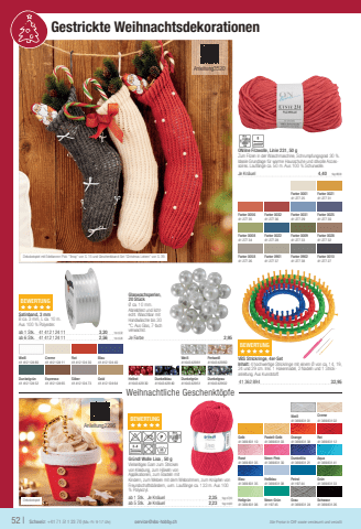 Dekobeispiel mit Edeltannen-Pick \Anleitung3520ONline Filzwolle, Linie 231, 50 gZum Filzen in der Waschmaschine, Schrumpfungsgrad 30 %. Ideale Grundlage f%u00fcr warme Hausschuhe und stilvolle Accessoires. Laufl %u00e4nge ca. 50 m. Aus 100 % Schurwolle.Je Kn%u00e4uel4,401kg=88,00BEWERTUNGxxxxxVBS Strickringe, 4er-SetInhalt: 4 hochwertige Strickringe mit einem %u00d8 von ca. 14, 19, 24 und 29 cm. Inkl. 1 Hakennadel, 2 Nadeln und 1 Strickanleitung. Aus Kunststoff.41362 89432,95Glaswachsperlen, 20 St%u00fcck%u00d8 ca. 10 mm. Abriebfest und lichtecht. Waschbar mit Handw%u00e4sche bis 30 %u00b0C. Aus Glas, 7-fach verwachst.Je Farbe2,95BEWERTUNGxxxxxSatinband, 3 mmB ca. 3 mm, L ca. 10 m. Aus 100 % Polyester.ab 1 Stk.41412 124 113,201m=0,32ab 6 Stk.41412 124 112,561m=0,26BEWERTUNGxxxxxGr%u00fcndl Wolle Lisa , 50 gVielseitiges Garn zum Stricken von Kleidung, zum H%u00e4keln von Applikationen, zum Basteln mit Kindern, zum Weben mit dem Webrahmen, zum Kn%u00fcpfen von Freundschaftsb%u00e4ndern, uvm. Laufl %u00e4nge ca. 133 m. Aus 100 % Polyacryl.ab 1 Stk.Je Kn%u00e4uel2,351kg=47,00ab 5 Stk.Je Kn%u00e4uel2,231kg=44,6052 |Schweiz: +41 71 511 23 70 (Mo.-Fr. 9-17 Uhr)service@vbs-hobby.chAlle Preise in CHF sowie versteuert und verzolltDekobeispiel Weihnachtliche Geschenkt%u00f6pfe Farbe 0001Farbe 002141277 2541277 31Farbe 0056Farbe 0032Farbe 0031Farbe 002541277 3541277 3641277 2941277 30Farbe 0008Farbe 0022Farbe 0009Farbe 002841277 3441277 2841277 3341277 32Farbe 0058Farbe 0901Farbe 0902Farbe 001041277 2641277 3741277 3841277 27 Gestrickte Weihnachtsdekorationen Wei%u00dfPerlwei%u00df41643 429 8141643 429 80HellrotDunkelblauDunkelgr%u00fcnDunkelgrau41643 429 3041643 429 4041643 429 5141643 429 02Wei%u00dfCreme41369 831 0141369 831 02GelbPastell-GelbOrangeRot41369 831 1041369 831 0341369 831 3841369 831 12Ros%u00e9Neon-PinkDunkellilaAqua41369 831 0541369 831 3041369 831 2141369 831 41BlauHellblauPetrolGr%u00fcn41369 831 3541369 831 0841197 4441369 831 33Hellgr%u00fcnNeon-Gr%u00fcnGrauSchwarz41369 831 0641197 4541369 831 2441369 831 26Anleitung2296Wei%u00dfCremeRotBlau41412 124 8041412 124 1141412 124 3041412 124 40Dunkelgr%u00fcnEspressoSilberGold41412 124 5241412 124 6541412 124 7341412 124 64