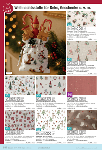 DekobeispielNEUMeterware, \215 g/m%u00b2, B ca. 140 cm, pfl egeleicht und widerstandsf%u00e4hig gegen Flecken, waschbar im Schonwaschgang bei bis zu 30 %u00b0C. Aus 70 % Baumwolle und 30 % Polyester.Ab 0.2 m in 0.1 m-Schritten bestellbar.41283 5416,25/m1m%u00b2=11,61NEUMeterware \215 g/m%u00b2, B ca. 140 cm, pfl egeleicht und widerstandsf%u00e4hig gegen Flecken, waschbar im Schonwaschgang bei bis zu 30 %u00b0C. Aus 70 % Baumwolle und 30 % Polyester.Ab 0.2 m in 0.1 m-Schritten bestellbar.41283 5616,25/m1m%u00b2=11,61NEUMeterware \115 g/m%u00b2, B ca. 150 cm, waschbar im Schonwaschgang bei bis zu 30 %u00b0C. Aus 100 % Baumwolle.Ab 0.2 m in 0.2 m-Schritten bestellbar.41284 7816,25/m1m%u00b2=10,83NEUMeterware \115 g/m%u00b2, B ca. 150 cm, waschbar im Schonwaschgang bei bis zu 30 %u00b0C. Aus 100 % Baumwolle.Ab 0.3 m in 0.1 m-Schritten bestellbar.41284 8216,25/m1m%u00b2=10,83BESTSELLERMeterware Musselin \130 g/m%u00b2, B ca. 130 cm, Motivgr%u00f6%u00dfe ca. 3 mm, waschbar bei 30 %u00b0C. Aus 100 % Baumwolle.Ab 0.2 m in 0.1 m-Schritten bestellbar.41399 500 0216,30/m1m%u00b2=12,54NEUMeterware \115 g/m%u00b2, B ca. 150 cm, waschbar im Schonwaschgang bei bis zu 30 %u00b0C, mit einer maximalen Schrumpfung von max. 6%. Aus 100 % Baumwolle.Ab 0.2 m in 0.2 m-Schritten bestellbar.41284 8016,25/m1m%u00b2=10,83NEUMeterware \115 g/m%u00b2, B ca. 150 cm, waschbar im Schonwaschgang bei bis zu 30 %u00b0C. Aus 100 % Baumwolle.Ab 0.2 m in 0.1 m-Schritten bestellbar.41283 6111,80/m1m%u00b2=7,87NEUMeterware Musselin \130 g/m%u00b2, B ca. 130 cm, waschbar im Schonwaschgang bei bis zu 30 %u00b0C, mir einer maximalen Schrumpfung von 5 %. Aus 100 % Baumwolle.Ab 0.2 m in 0.1 m-Schritten bestellbar.41284 9016,30/m1m%u00b2=12,5454 |Schweiz: +41 71 511 23 70 (Mo.-Fr. 9-17 Uhr)service@vbs-hobby.chAlle Preise in CHF sowie versteuert und verzollt Weihnachtsstoffe f%u00fcr Deko, Geschenke u. v. m.