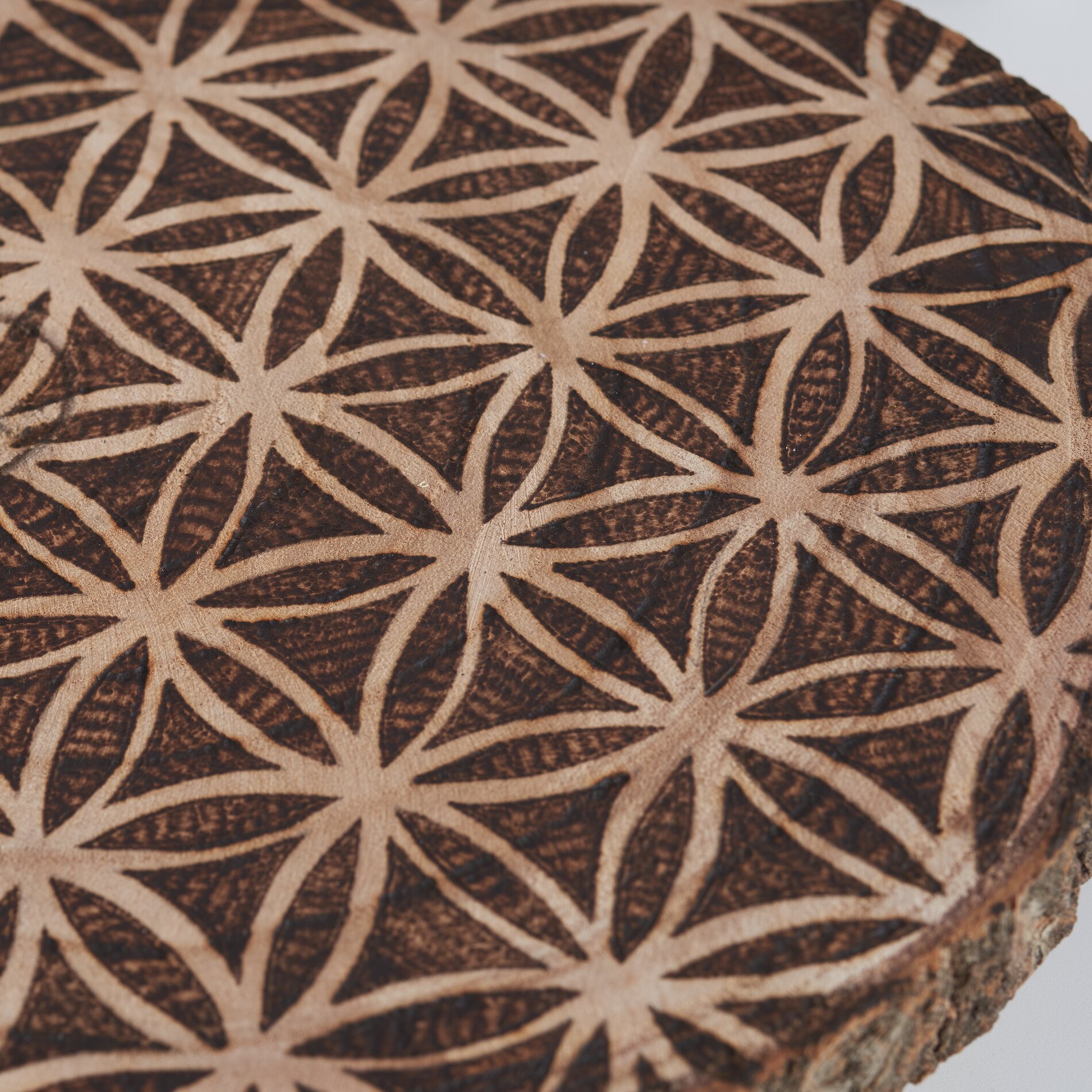 Mit Hilfe einer Schablone kannst du natürliche Motive dauerhaft ins Holz einbrennen.