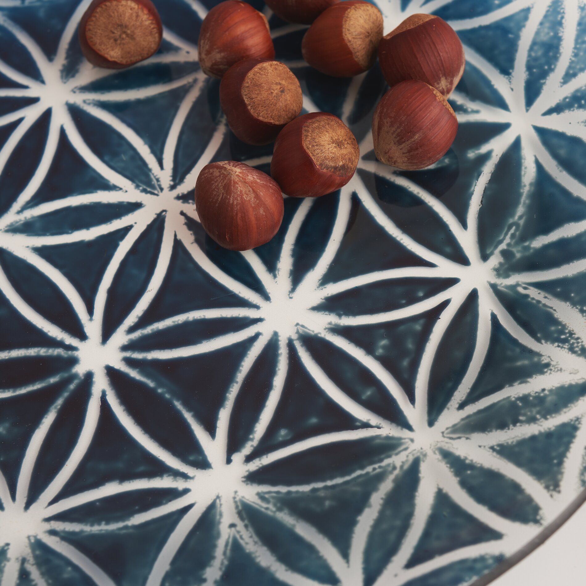 Lass den Glasteller mindestens vier Stunden trocknen. Zum Einbrennen stellst du ihn in den kalten Backofen, heizt diesen auf 160 °C auf und brennst die Farbe für 90 Minuten ein. Danach den Teller vollständig im Ofen auskühlen lassen – so wird die Bemalung haltbar und spülmaschinenfest.