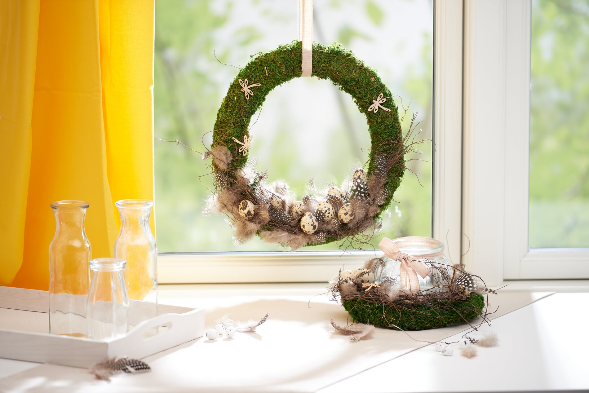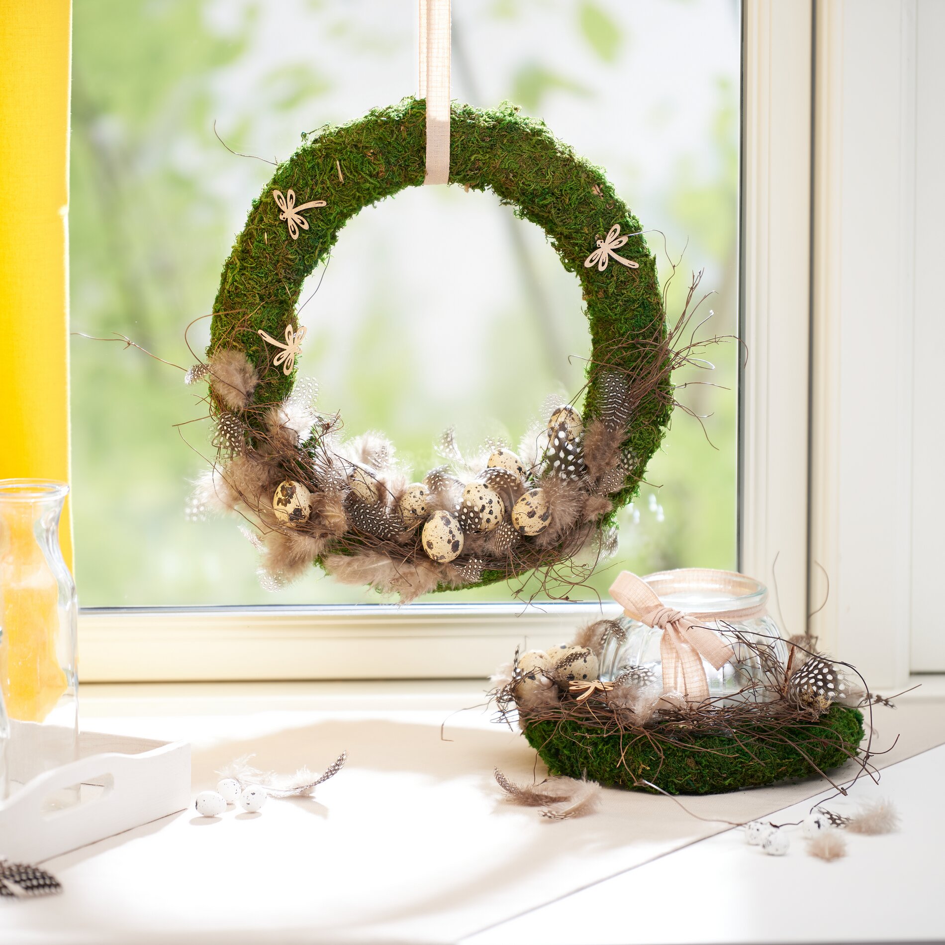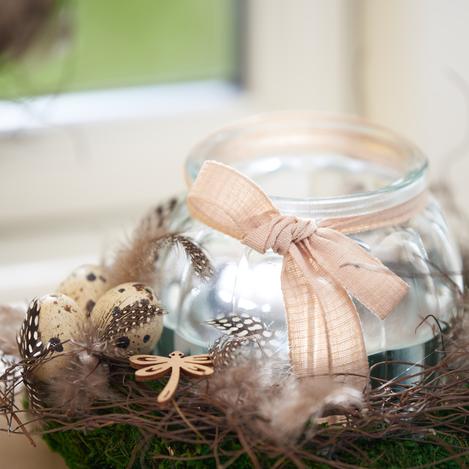 Diese Idee ist ein gutes Beispiel für dekoratives Basteln mit Naturmaterialien für die Osterzeit. Mooskränze, Deko-Weide und mehr bringen den Zauber der Natur direkt in dein Zuhause. Lass dich inspirieren und gestalte mit unseren Materialien deine eigenen natürlichen Osterdekorationen!