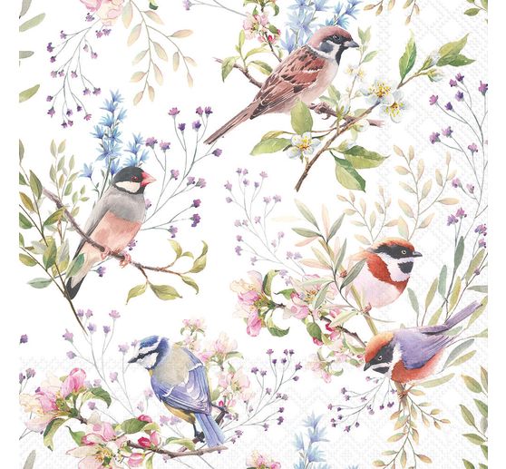 Begrüße den Frühling mit der zauberhaften Serviette "Busy Birds". Dieses kunstvolle Design zeigt ein lebhaftes Ensemble von Vögeln inmitten blühender Zweige und bringt sofort Frühlingsgefühle in dein Zuhause. Mit der Serviettentechnik kannst du das Motiv auf vielfältige Untergründe wie Glas, Keramik oder Stoff übertragen. Verschönere damit Schubladen oder Möbelstücke und verleihe ihnen einen einzigartigen Charakter. Die ganze Serviette misst 33 x 33 cm und ist perfekt für großflächige Dekorationen. Hol dir jetzt deine kreative Inspiration!