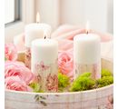 Die schlichte Stumpenkerze kann für kreative Kerzendesigns super verbastelt werden. Eine Gestaltung mit Verzierwachsplatten, Candle Linern und Motiven, Schriften und Namen für verschiedene Anlässe wie Geburtstag, Hochzeit, Taufe und Konfirmation/Kommunion lässt sich hervorragend mit der Kerze umsetzen. In einem großen Windlicht dekoriert oder in einem Tischgesteck sowie für Adventskränze – es gibt unzählige Einsatzmöglichkeiten.