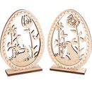 Bring frischen Wind in deine Osterdekoration mit unseren bezaubernden VBS Holz Deko-Ei-Aufsteller "Osterhasen" im 2er-Set! Diese charmanten Holz-Dekorationen sind die perfekte Leinwand für deine Kreativität. Mit einer Höhe von 19 cm und einer Breite von 14 cm bieten sie ausreichend Fläche, um sie mit Farben, Pasten oder Papieren nach Herzenslust zu gestalten. Die Eier lassen sich nach dem Dekorieren ganz einfach in den Standfuß stecken und bei Bedarf mit etwas Kleber (nicht enthalten) fixieren.