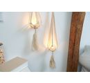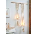 Das Glas eignet sich auch ganz wunderbar als Blumenampel in Verbindung mit Makramee. Mit verschiedenen Knoten und in verschiedenen Höhen aufgehängt entsteht ein Blickfang für das Wohnzimmer oder die Terrasse. Mit Lichterketten, kleinen Sukkulenten oder LED-Teelichtern bekommen Sie eine glänzende Atmosphäre.